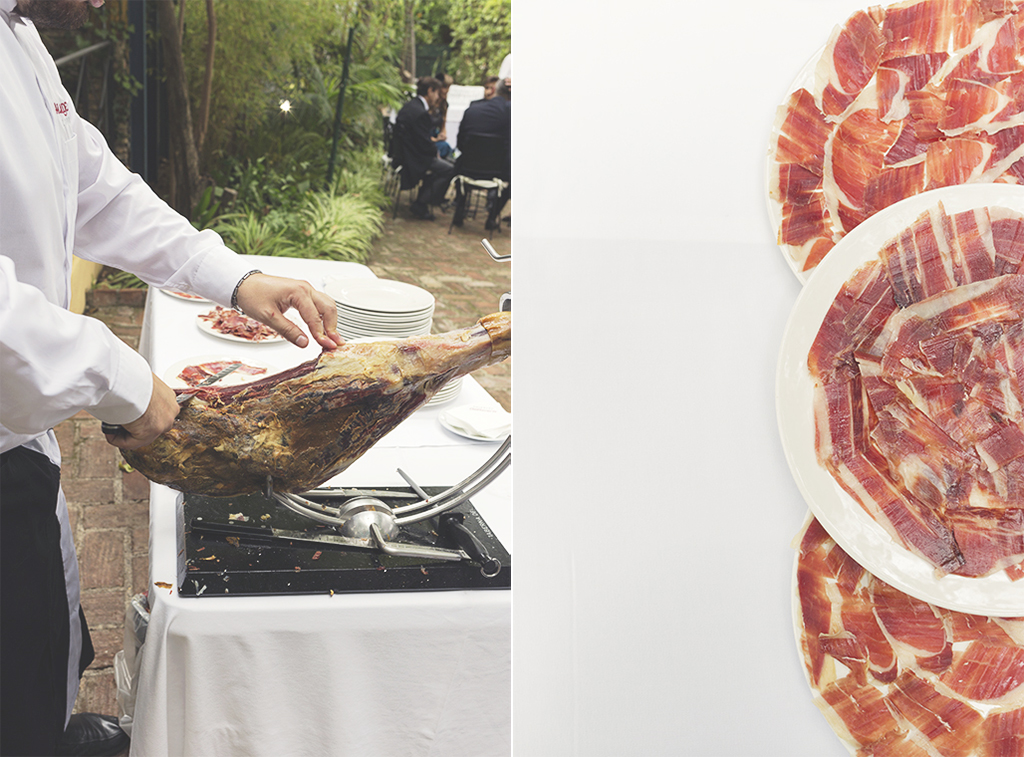 Al llegar a la Hacienda, nos encontramos con diferentes zonas repartidas por el jardín: una sólo para mojitos (exquisitos, por cierto), un stand de champán, otro de quesos, de aceite, jamón, vinos...ay, cuántas cosas buenas. La pena es no haber podido fotografiarlos todos. No quería ser yo la pesada que molestara a los invitados e inmortalizarlos con la boca llena ;)